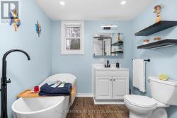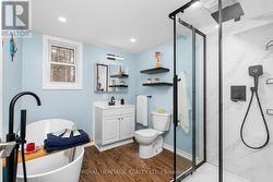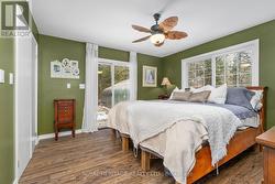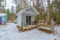Nestled in the prestigious Chaffey community of Huntsville, this beautifully maintained and recently updated bungalow blends country charm with contemporary design. Newly finished with board-and-batten slate-blue vinyl siding and a durable metal roof, this home offers stylish curb appeal and low-maintenance living. Inside, you'll find a bright, open-concept layout where the living and dining areas flow seamlessly into a well-appointed kitchen featuring sleek finishes, a gas range, and convenient main-floor laundry. The cozy gas fireplace creates a warm, inviting atmosphere, especially as you enter through the covered, enclosed mudroom-ideal for shedding winter layers. The home offers two comfortable bedrooms with 2 6ft closets and a modern four-piece bath. Outside, enjoy privacy among century-old trees from the back deck. An insulated auxiliary bunkie with heat and electricity provides additional space and awaits your finishing touches. Located in a quiet waterfront community just 10 minutes from Huntsville and steps to Lake Waseosa offers, public access This property perfectly blends serenity with practicality. High-speed internet supports working or streaming from home. A new portable garage with 10 years remaining on the warranty is also included. Whether you're downsizing or purchasing your first home, this inviting bungalow-bathed in natural light with potential to expand-offers endless possibilities. Here are some of the updates: FULL RENOVATION 2023/NEW METAL ROOF/NEW SIDING/DRYWAY/ELECTRICAL/PLUMBING/PROPANE STOVE/BUNKIE/10 YEARS LEFT FOR PORTABLE 2 CAR GARAGE (2019)/REFRESH ON DRIVEWAY. First Time Buyers, Downsizer or Investors Dream Opporunity! (id:27)