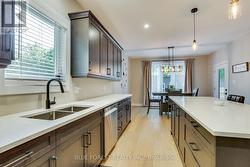 Want all off the features and benefits of a new home without having to go through the whole building process? Well stop the car, here it is! This one year young home is centrally located on a quiet street and features a full in law suite with separate entrance. Parking for 8 vehicles and features an optional area to park your trailer. Enter thru the double front doorway and be prepared to be impressed. Beautiful white colour scheme with neutral flooring and wood accents on the stairway. Head down the hall and you will find the inside entrance to the garage, a closet and a built in bench that will be appreciated by both the young and the not so young alike. There is also a 2 piece powder room adjacent. Just ahead is the open concept family room and kitchen and dining area. It is a bright and cheery space with pot lights and oversized windows and attention to the details. Among these are the large island, pantry and tasteful fixtures, adding accents all around. From the dining area you can access the rear deck and make your way to your hot tub! Upstairs you will find the primary bedroom, of course it has a walk in closet and an oversized ensuite with heated flooring , creating the perfect oasis. There are two additional bedrooms that are both spacious as well as a convenient laundry closet. On the lower level is a fully self-contained unit, perfect for multi-generational living. It includes a full bathroom, a large bedroom and combination kitchenette and family room with a gas fireplace as the focal point. This can be utilized as an extension of the home or as a totally separate entity as it features its own entrance through the garage. The rear yard is fully fenced and has a firepit and is quite private. There is also an oversized shed for all of your outdoor storage needs. The driveway is scheduled to be paved (asphalt) in the very near future. New and Like New thru and thru (id:27)