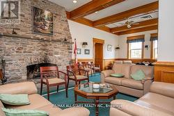 Spotless, spacious, & bright is this 3 bedroom, 2.5 bath unit in the lovely Rivermill condominium complex! This premium 1685 square foot unit offers hardwood and ceramic flooring throughout, a large living/dining area with gas fireplace, crown molding, & patio doors leading to the balcony w/gas BBQ hookup. The bright white kitchen offers ample cupboard and counter space, stainless steel appliances, and a reverse osmosis system. All 3 bedrooms are a nice size, and the spacious primary includes a walk-in closet, and ensuite washroom with a bathtub as well as a step-in shower. The gas furnace with humidifier & air conditioner were replaced in 2020, and there is in-suite laundry, and an additional room for storage. Included with this unit is an underground parking space and a secure storage locker. The condo fees include all utilities (heat/hydro/water), as well as use of all common areas such as the heated indoor pool, sauna, exercise room, party room, games/billiard room, and the lovely rooftop patio above the gorgeous clubhouse, overlooking Scugog River. Docking space is available, as well as a flexible closing, and this building is pet friendly (with some restrictions). Everything you could want in a low-maintenance lifestyle can be found here! (id:27)