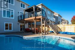 Welcome to this stunning, over 3000 sq ft Tamarack Oxford Model on the highly desirable East End street of Fieldstone Drive. Step into the main floor to find hardwood flooring throughout, an open foyer with adjacent living & dining space combination, an office/den, inside entry to the double garage & a 2pc bathroom. The beautiful open concept kitchen with maple cabinetry, granite countertops, a large kitchen island connected to the massive living room with large windows, a gas fireplace & exterior door to the elevated balcony overlooking the Greenwood Park trail & Butternut Creek. The upstairs also hosts hardwood throughout, 3 large bedrooms, one with walk-in closet & a 4pc ensuite, 2nd floor laundry, another 4pc bath, & finally the primary with 5pc ensuite with his & hers sinks, soaker tub, tiled shower & ample closet space. The fully finished walk-out basement with laminate flooring has a large rec room, an additional 3pc bath with ceramic tile flooring, a games room doubling as a bonus bedroom or office, utility room & storage space. The fully fenced backyard features interlocking brick, a kidney shaped in ground salt water & heated pool along with a pool shed. This beautiful home is located just a few minutes from CFB Kingston & all other east end amenities, & is arguably one of the most fully loaded homes in the area. (id:7525)