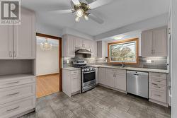 Welcome Home to 987 Mayfair Crescent! Located in Kingston's sought-after West End Bayridge neighbourhood, this well-maintained side-split offers 5 bedrooms and 2 bathrooms, blending style, comfort, and convenience in one inviting package. From the moment you walk in, you'll be greeted by bright, open spaces. The spacious living room features a large bay window, elegant cove moulding, and hardwood floors throughout, filling the home with natural light and warmth. The upgraded kitchen showcases crisp white cabinetry, granite countertops, a tiled backsplash, and stainless-steel appliances - perfect for everyday living and entertaining. The family room provides a cozy retreat with a gas fireplace, built-in bookcases, and walkout access to the backyard with a deck and retractable awning. Upstairs, you'll find three generous bedrooms and a 4-piece bathroom. The fully finished lower level adds even more versatility with two additional bedrooms (or office/hobby spaces), a 3-piece bathroom, and a dedicated laundry and utility room offering storage solutions. Step outside to enjoy your private, fenced backyard oasis, ideal for relaxing or hosting family gatherings. An attached single-car garage adds convenience. Perfectly situated close to schools, parks, shopping, restaurants, and public transit, this charming home offers everything you need for comfortable family living. Whether you're a first-time buyer or growing family, don't miss your chance to make this beautiful home your own! Home inspection available. Offers will be presented on December 9th. (id:27)