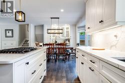 This fully renovated 3+1 bedroom home offers modern comfort, functional design, and a backyard retreat that feels like a private resort. Inside, the main floor boasts a bright open concept, highlighted by a custom kitchen with walk-in pantry, a spacious dining area with a built-in coffee nook, and a sun-filled living room featuring a sleek workstation—perfect for today’s lifestyle. The upper level provides three generously sized bedrooms and a spa-inspired 5-piece bath complete with soaker tub, glass shower, double sinks, and cheater access to the primary suite. On the lower level, a cozy family room with an airtight wood-burning fireplace creates the perfect spot to gather, while an additional bedroom or office and a full 3-piece bath provide flexibility for family or guests. The fourth level offers even more versatility, with a workout room, utility space, and a cold room ideal for storage or canning. A convenient grade entrance provides direct access to the outdoors, making this home well suited for multi-generational living or private guest quarters. Step outside and prepare to be impressed. The nearly 400-foot deep lot backs onto a serene ravine, creating an unmatched sense of privacy. A heated pool anchors the outdoor living space, while the finished pool house—equipped with a third full bathroom and a kitchenette—sets the stage for summer entertaining, visiting guests, or simply enjoying everyday resort-style living. Equally important, peace of mind comes built in. Within the last three years, the roof, and major systems have all been updated, meaning the work is already done for you. Whether you’re hosting family gatherings, working from home, or retreating to your backyard oasis, this property combines thoughtful upgrades with lasting value. A truly rare opportunity to enjoy comfort, style, and a vacation-at-home lifestyle. (id:27)