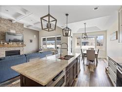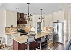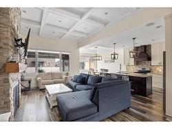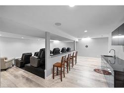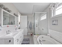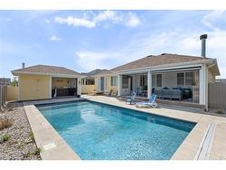 This home has surprises for your entire family! It features an entertainers main floor with an open kitchen/dining/living room. The kitchen features a large walk-in pantry, drawer microwave and has a large island for prep and entertaining. The living room has a beautiful gas fireplace and coffered 10 foot ceiling. You will love the engineered hardwood throughout the space. There are also 3 bedrooms, 2 full bathrooms and laundry room on the main level.. The Primary bedroom has French doors to the back deck area. The ensuite bath has a walk-in shower, large soaker tub and walk-in closet.The basement area has a media room with projector, multi-level seating and wet bar. Work out in your own gym with mirrors and sound system. This level also has a 4th bedroom and 3 piece bathroom.When you walk out onto your fabulous enclosed deck with wood burning fireplace and drop down screens you won’t be able to resist jumping into the inground sports pool. There is also a bar shed with 2 piece bathroom and outdoor shower.This home is perfect for an active family!