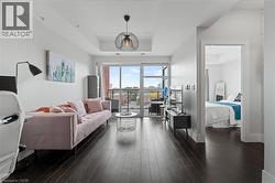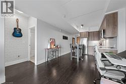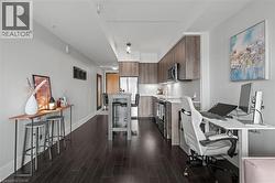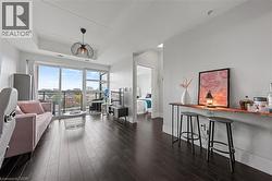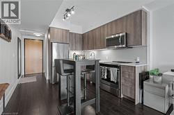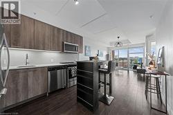 Fabulous 1 bedroom 1 bathroom condo with floor to ceiling windows giving you tons of natural light all day. This very popular and well maintained building is in a fabulous and convenient location between downtown Kitchener and uptown Waterloo, in the Mount Hope neighbourhood and close to the Google office. This nice clean, move in ready, carpet free condo really is a must see, nice open concept bright living area, well equipped kitchen with stainless appliances included, a spacious balcony with amazing views, a nice bright bedroom, a 4 piece bathroom, in suite laundry with washer and dryer included. This condo also benefits from having private underground secure parking and a storage locker, and the condo is very efficient with its geothermal heating and cooling system. A great condo for the first time buyer looking to get into the market or a very low maintenance unit for the savvy real estate investor. (id:27)