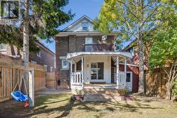 Experience the perfect blend of timeless character and modern comfort in this beautiful 3-bedroom, 2-bath century home near Downtown Kitchener. Full of charm and thoughtful updates, this home showcases detailed trim, updated flooring, and a beautifully renovated bathroom. The modernized kitchen features granite countertops, updated cabinetry, and stainless steel appliances - combining functionality with style.The spacious main floor offers a bright living room and a formal dining area with double sliding doors that open to the private backyard - perfect for enjoying the outdoors. Upstairs, three inviting bedrooms and an updated 4-piece bath provide plenty of comfortable living space.Outside, youll find both front and back porches where you can sit and soak up the sunshine, along with a fully fenced yard featuring mature landscaping and a deck ideal for relaxing or entertaining. With parking for up to 5 cars, this home offers convenience and character in equal measure.Located within walking distance to the LRT, Victoria Park, shops, restaurants, and more, this home beautifully combines century home charm with modern city living. (id:27)