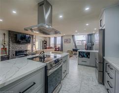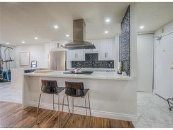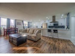 Welcome to Unit 410 at 185 Kehl Street - a rare and beautifully renovated gem in Kitchener that's truly move-in ready. Since 2022, this unit hasseen over $30,000 in stylish upgrades, making it one of the most updated condos you'll find at this price point. Step inside to find updatingflooring, fresh paint throughout and a warm, inviting living space complete with a custom fireplace surround. The completely renovated eat-inkitchen is a true showstopper, featuring quartz countertops, a custom island, beautiful cabinetry, and a newer stainless steel appliances - perfectfor morning coffees, causal meals, or entertaining guests. The spacious layout includes a two-piece ensuite, a renovated main bathroom, andeven in-suite storage to keep everything organized. Step out onto your private balcony and enjoy the sunset after a long day - it's a perfect spotto unwind. Set in a building with a distinctive exterior and updated windows, this unit stands out not just for its interior updates, but also for itslow condo fees, which are a rare find in Kitchener-Waterloo. With quick access to Highway 7/8 and close proximity to everyday amenities, thiscondo is ideal for first-time buyers, downsizers, or savvy investors. Don't miss your chance to own one of the most beautifully updated units inthe building!
