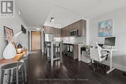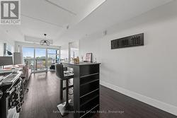 Fabulous 1 bedroom 1 bathroom condo with floor to ceiling windows giving you tons of natural light all day. This very popular and well maintained building is in a fabulous and convenient location between downtown Kitchener and uptown Waterloo, in the Mount Hope neighbourhood and close to the Google office. This nice clean, move in ready, carpet free condo really is a must see, nice open concept bright living area, well equipped kitchen with stainless appliances included, a spacious balcony with amazing views, a nice bright bedroom, a 4 piece bathroom, in suite laundry with washer and dryer included. This condo also benefits from having private underground secure parking and a storage locker, and the condo is very efficient with its geothermal heating and cooling system. A great condo for the first time buyer looking to get into the market or a very low maintenance unit for the savvy real estate investor. (id:27)