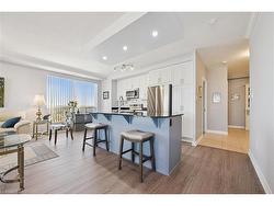 Located in Belmont Village Condominiums, this 8th floor unit offers care-free living in a beautiful, well-kept building. Step inside the unit and appreciate the built-in cabinetry and large coat closet. Spacious open-concept kitchen/dining room/living room layout with updated luxury wide-plank flooring in the main living space and both bedrooms. Ceramic tile in the foyer, laundry room and both bathrooms. Freshly painted throughout, this unit shows so well and is truly move-in ready. The laundry room has a new stackable washer/dryer set (2024) plus room for a second fridge and extra storage space. The white kitchen has new stainless fridge, stove and microwave, granite counters, an island with extra prep space and plenty of storage. This corner unit is bright with lots of natural light and 180 degree views of the city. The primary bedroom is large and has a walk-in closet and primary bathroom with double sinks and walk-in shower. One underground parking space that is close to the building entrance plus lots of visitor parking outside. Building amenities include: party room, media room, exercise room, games room, guest suite, community BBQ on the patio. Condo fees include heat, air conditioning and water. Centrally located and walkable to all the shops and restaurants in Belmont Village, the Iron Horse trail, and quick access to Uptown Waterloo or Downtown Kitchener.