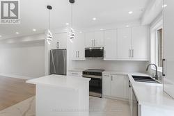 Just Completed!! Tastefully Renovated 4-Bedroom Townhome in Sought-After Commerce Valley! This Rare, Functional Layout Is Ideal for Modern and Multi-Generational Living. Never Lived In Since Full Top-to-Bottom Renovation. Bright, Airy Interior with 9' Ceilings, Oversized Windows, and Wide-Plank Water-Resistant Flooring Throughout. Sleek High-Gloss Kitchen Featuring 36x36 Porcelain Tiles, Tall Cabinets, Premium Caesarstone Counters & Backsplash, Gunmetal Double Sink, and Samsung S/S Appliances. Designer Bathrooms with 24x32 Porcelain Tiles, Custom Vanities, Gunmetal Fixtures, and High-End Finishes. Two Spacious Primary Suites on the Upper Level, Each with His & Hers Closets and 4-Pc Ensuites. Main Floor Features a Great Room and Additional Bedroom with 4-Pc Bath Access & Walk-Out. Finished Basement with Direct Access to Underground Garage. Additional Features Include Upgraded Central Vac, Remote-Controlled Lighting, New 1-Panel Doors with Black Hardware, and Modern Metal Stair Pickets. Low Monthly Maintenance Covers Water, Lawn Care, Snow Removal, Roof & Window Maintenance. Prime Location Near Hwy 404/407, GO Station, Parks, Shopping, Dining & Top-Ranked Schools. Move-In Ready A Must-See! (id:27)