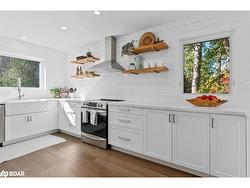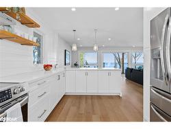 Welcome to this beautifully renovated bungalow, perfectly positioned on the inviting shores of Lake Simcoe. This home is an ideal retreat for those who cherish waterfront living with modern comforts. Completely remodeled from top to bottom this cottage or waterfront home is practically brand new inside and out. Upon entering, you are welcomed into a spacious open-concept area, where stunning lake views meet highend finishes. The kitchen boasts quartz countertops and new stainless steel appliances, creating a stylish and functional space for cooking and entertaining. Adjacent is the living and dining area, complete with a new gas fireplace, adding warmth and ambiance to the room. The home features two large bedrooms, ample space for family and guests. Additionally, a quaint one-bedroom bunkie with a private balcony offers extra accommodation, perfect for visitors seeking privacy. For those considering future expansions, permit-ready plans are available. These include adding a main floor primary suite with a full en-suite bathroom and a third bedroom on the lower level, enhancing the home’s versatility and appeal. Outside, a new 40-foot dock and expansive deck await with a stand for kayaks and paddle boards, setting the stage for unforgettable summer days filled with water activities and relaxation. Upgrades include new James Hardie siding, new electrical panel and wiring throughout the house, upgraded well & UV system, new asphalt driveway, landscaping completely redone, new glass railings throughout interior & exterior, new soffit and fascia (2021) and more. With gorgeous south east views across Carthew Bay and Lake Simcoe, this waterfront gem is ready to be your summer sanctuary. Located less than 15 minutes to Orillia for shopping, and an hour from the GTA, access and convenience is a breeze.