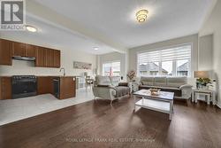 Welcome to 1884 Fosterbrook Street in Oshawa's sought after Fields of Harmony. This impressive two storey Hillside Elevation B was purchased as one of the largest floor plans and offers over 2,300 square feet of upgraded living with a mainly brick exterior for timeless curb appeal. The fully finished walkout basement was completed with permits and adds two bedrooms, a full bath, a wet bar, and enlarged egress windows that are perfect for extended family or guests. It also includes a dedicated second laundry room with hookups. The main floor features an open concept design anchored by Preverco 5/8" red oak hardwood Komodo through the great room and family and dining areas, complemented by a custom 50" linear electric fireplace with a 75" mantel shelf. The kitchen showcases Moonlight granite counters with an under-mount sink and an upgraded faucet, Siena oak cabinetry in a warm medium brown finish, a waterline to the fridge, a stainless hood fan, and a valance lighting rough in with junction. A builder added interior garage access door provides everyday convenience. Upstairs, every bathroom is finished with upgraded Moonlight granite counters over White Crystal vanities, while the oak staircase is stained to match with upgraded pickets. Builder installed hard wired security wiring is active, the front yard interlock enhances curb appeal, and additional touches include a TV outlet above the fireplace and an extra light box in the family and dining room. Original owners, pet free, never rented, and meticulously cared for, the home is approximately two years new with the balance of the Tarion New Home Warranty and a central vacuum rough in.Ideally located minutes to Highway 401 and Highway 407, schools, parks, shopping, and places of worship, with university and college about six minutes away, this home blends size, style, and function with a premium walkout lower level in one of Oshawa's most desirable new neighbourhoods. ** This is a linked property.** (id:7525)