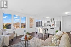 Welcome to this modern two-storey condominium situated in a highly sought-after neighbourhood, close to schools, parks, and just a short drive from the Barrhaven Marketplace Plaza. The open-concept main floor offers a sleek kitchen with stainless steel appliances, a cozy dining area, and a bright living room with patio doors leading to a spacious deck, perfect for entertaining or relaxing outdoors. A convenient two-piece bathroom completes this level. Upstairs, you'll find two generous bedrooms filled with natural light. The primary bedroom is impressively big, while the second bedroom is equally inviting. A beautiful three-piece bathroom and a laundry cupboard provide both comfort and convenience. With its modern design, functional layout, and ideal location, this home is an excellent choice for first-time buyers, downsizers, or investors. (id:27)