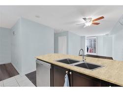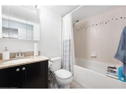 The Gates of Bayview Glen! Well maintained & diligently managed 1+den condo w/ parking & locker in PRIME location mins to schools, parks, Golf, shopping, Major HWYS, Public Transit, & much more! * Low Maintenance fees offering tremendous amenities & utilities * Bright foyer presenting open-concept thoughtfully designed layout. Eat-in kitchen w/ tall cabinets, granite counters, tile backsplash, SS appliances & breakfast island. Open-dining space leads into spacious sun-filled living room W/O to balcony offering gorgeous south facing views. Primary Bed retreat can fit king-size bed w/ large W/I closet across from 4-pc bath. Separated den space ideal for home office, nursery, or pet space. Enjoy ensuite laundry! Pictures virtually decluttered to protect tenant privacy