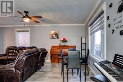 Updated bungalow offers comfort, space, and modern style. Featuring 3+1 bedrooms & 3 full bathrooms. The primary suite boasts a private ensuite & large walk-in closet. This home is perfect for family living. The spacious eat-in kitchen includes large peninsula, stainless steel appliances, ample cupboard and pantry space, and a layout ideal for everyday living. The lower level offers a large rec room with a cozy gas fireplace, perfect for movie nights, family gatherings, or even a home gym. You’ll also find plenty of extra storage under the stairs and a 4th bedroom on this level. The utility room offers tons of storage with shelving. Step outside to the fenced backyard, a great space for kids, pets, or even a future pool. This is a move-in ready home in one of New Sudbury’s most family friendly neighbourhoods. (id:27)
