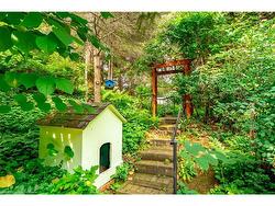 Welcome to this custom-built bungalow in the heart of the Short Hills, backing onto protected conservation land and a large tranquil pond. Built in 1988 and offering over 1,650 sq ft of living space, this well-maintained home features 3 bedrooms, 2 full bathrooms, and beautiful hardwood flooring throughout. The sunken living room with wood-burning fireplace adds warmth and character, while large windows offer peaceful views of nature year-round.The kitchen and bedrooms walk out to an extensively landscaped oasis — perfect for relaxing or entertaining. The walkout basement includes access to the attached oversized single-car garage and offers future potential for more living space or in-law setup.Tucked away on a quiet street just minutes to Fonthill, Thorold, and nearby trails, this is a rare opportunity to enjoy privacy, nature, and timeless quality in one of Niagara’s most desirable settings.