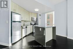 Amazing Corner Unit In The Islington-City Centre West Neighbourhood And Is Walkable To The Subway! This 1 Bedroom + A Large Den Has A Full 4pc Bathroom Plus An Addition 2pc Washroom. 803 Sqft Offers A Huge Space With 9 Ft Ceilings, Laminate Floors Throughout And Floor To Ceiling Windows That Allow For Plenty Of Natural Light. Beautiful Open Concept Kitchen Featuring Quartz Counters, Stainless Steel Appliances And A Waterfall Kitchen Island. A Large Bedroom With A Walk Out To The Balcony, Large Closet And A 4pc Ensuite Bathroom. Amenities Include: Concierge, Visitor Parking, Gym, Party Room And Guest Suites. Walking Distance To Islington & Kipling Subway Station, Kipling GO Station, Parks, Schools, Plenty Of Restaurants, Bars And Shops In The Area. Close To Islington Golf Course, Bloor West Village, High Park, Pearson Airport. Easy Access To HWY 427, 401, Gardiner Expy, QEW. One Of The Most Convenient Locations In The City! Some photos virtually staged. (id:27)