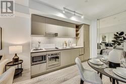 Beautifully designed 2 bedroom plus den unit in the newly built 55 Mercer Condominiums by Centrecourt. With 738 sq ft of well appointed living space, this north-facing unit offers a serene retreat in the heart of the city. As you enter, you'll be greeted by an open-concept layout that maximizes space and light. The bright living area is perfect for relaxation and entertaining, while large windows provide an abundance of natural light. The contemporary kitchen is equipped with high-quality appliances and sleek cabinetry. The separate den provides an ideal space for a home office, nursery, or cozy reading nook. As a resident of 55 Mercer, you'll enjoy access to The Mercer Club which offers 3 floors of state-of-the-art fitness, co-working and entertainment spaces. Parking available upon request. (id:27)