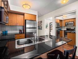 Stylish & Functional Living at Metro Place Condos! This bright and spacious 1+1 bedroom suite offers an intelligently designed layout with a versatile den perfect as a 2nd bedroom or home office. Enjoy an open-concept living/dining area with walk-out to a private east-facing balcony, flooding the space with natural light. The modern kitchen features granite counters, breakfast bar, and ceramic backsplash. Large foyer with double closet, laminate floors throughout, and numerous upgrades add to the appeal. Low maintenance fees! Prime Location: Steps to Sheppard West Subway Station, minutes to Yorkdale Mall, Costco, York University, parks, and major highways. Resort-Style Amenities: Indoor pool, sauna, fitness centre, party room & more. Includes 1 parking spot, stainless steel appliances, washer/dryer, custom blinds, and upgraded shower with jets. A must-see home that checks every box! (id:7525)