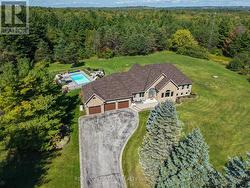 Magnificent 50 Acre Corner Parcel 4 Minutes East of Mount Albert. Spectacular Private Hilltop Setting With 2 Gated Driveways. This Beautifully Appointed & Spacious Bungalow Is Impressively & Extensively Renovated. The Home Overlooks A Private, Resort Inspired Pool/Patio (2020) With A Backdrop Of Sweeping Lawn Areas & Forest With Stream. Quality Constructed And Featuring An Open Concept Light Filled Interior With Lofty Ceilings, Wonderful Views and Many Custom Features Like The Luxurious Primary Ensuite. The Spacious Front Entry Has An Inviting Open Staircase To Well Executed Lower Level Suited To Separate Quarters Boasting A Bathroom, Picture Windows, Separate Access To The Garage Plus A Rear Walk-Out To Ground Level. Turn-Key Condition Inside And Out. Park Your R/V (With Full Power & Sewer Hookup) In The Industrial Style Shop Which Is A Car Enthusiast's /Trade Person's Dream! Lots Of Scope With A Rare & Incredible Package Such As This!! 400 Amp Hydro Service, Shop 64'x34'(14'Ceiling) With Separate Gated Driveway and Regrind Asphalt Parking Area, Office , Washroom, InsulatedPropane Heat. 20x35 Shelter With Concrete Floor, Updated Insulation, Heating Systems, Kitchen, Baths. (id:27)