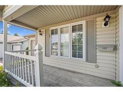 Charming DETACHED BUNGALOW with SOARING ceiling and TANDEM GARAGE in QUIET ADULT LIFESTYLE community of Martin Grove Village. Open concept layout with double vaulted ceiling and lots of natural light. Central kitchen with island and great counter space. You'll love the separate workspace/beverage area with additional cupboards and countertop. Spacious living room with gas fireplace and lovely windows with California shutters. Large primary bedroom with amazing walk-in closet. Second bedroom with double closet is spacious as well--this room could also be a great office or craft room. Large main floor bathroom has 2 sinks, large vanity, separate shower and amazing premier walk-in tub for your convenience! Main floor laundry with lots of storage and laundry sink. And there's more! Basement has a 3 pc bathroom, plus a finished bonus room which could be nice hobby room, workout area, etc. The rest of the basement provides a huge amount of storage space or so many possibilities for your personal touch. You'll love relaxing or visiting with family and friends on your private back deck--it spans almost the width of the house, has a gas line for barbeque, and lovely open space behind--no back neighbours! Motorcycle or extra stuff? You'll love the extra long garage--can fit 2 small cars tandem, or one large vehicle and lots of extra storage space/workshop, etc. Fantastic location--quiet area, minutes from the St. Jacob's Market, Highway 85, Conestoga Mall and all that Waterloo has to offer! Low overall cost of living and live in style! Come see this hidden gem!