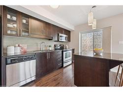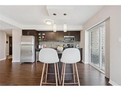 Welcome to this bright and beautifully maintained 2-bed, 2-bath condo in the highly sought-after Laurelwood/Laurel Creek Village community. Featuring over 1,000 sq. ft. of living space plus a spacious balcony, this corner unit offers an open-concept layout with hardwood flooring, large windows allowing for year-round natural light. The gourmet kitchen includes granite countertops, stainless steel appliances, a large island, and modern dark cabinetry. The primary suite features a walk-in closet and an oversized ensuite with a glass shower, double vanity. The second spacious bedroom and another 4-piece bath are thoughtfully separated for added privacy. In-suite laundry is tucked away near the foyer for convenience. This unit includes 1 dedicated parking spot and an oversized locker. Enjoy top-tier building amenities: a party room, theatre, game room, BBQ area, bike storage, ample visitor parking, and more. Ideally located near the top schools of Waterloo Region, universities, trails, parks, YMCA, library, shopping, and transit. A fantastic opportunity in one of Waterloo’s most desirable neighborhoods!