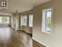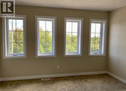 For more info on this property, please click the Brochure button. Welcome to this 4-year old, 4 bed beautifully upgraded 1,898 sq. ft. executive end-unit townhome located in the prestigious River Ridge community, just moments from Kiwanis Park and the Grand River. This true corner lot offers exceptional privacy and a rare detached double garage plus two additional driveway spaces (4 total). Designed for modern living, the main floor features a dedicated office, ideal for remote work. The open-concept kitchen, dining, and family room boast oversized windows that fill the home with natural light. A second family room provides additional space for relaxing or entertaining. High-end finishes include stainless steel appliances, front-load laundry, and numerous luxury upgrades throughout. Property Features: 3 spacious bedrooms + main-floor office / 4th bedroom; Two family/living rooms; Detached double garage + 2 driveway spots; High-end appliances and modern finishes; Corner lot with excellent natural light and green-space views. This is a rare opportunity to live in a highly sought-after neighbourhood surrounded by parks, trails, and premium homes. Internet, hot water heater rental and landscaping / snow removal to be paid by tenant. (id:27)