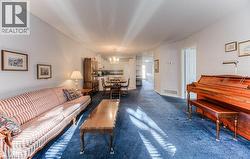 Turnkey Bungalow Townhome in Prime Waterloo Location! Looking to downsize, purchase your first home, or enjoy the ease of single-level living? This immaculate 2-bedroom bungalow townhouse condo—with an attached garage—is the perfect fit, nestled in one of Waterloo’s most desirable neighbourhoods. The main floor features a spacious and bright open-concept layout combining the family room, dining area, and kitchen—ideal for everyday living and entertaining. The generously sized primary bedroom includes a 4-piece ensuite and double closet, while the second bedroom (currently used as an office/den) also features a closet for added flexibility. Enjoy peace of mind with a well-maintained and move-in-ready home, including a finished basement offering a large rec room with cozy gas fireplace, a 3-piece bathroom, and a versatile bonus room currently set up with two single beds—perfect for guests, a home gym, or games room. Relax or entertain outdoors on the new deck complete with a gas BBQ hookup. Additional highlights include main floor laundry, a 100-amp electrical panel, and newer furnace and central air (2017). Don't miss your opportunity to own a low-maintenance home in a sought-after community! (id:27)