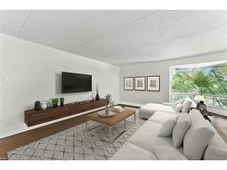Welcome to Unit 404 at Spruce Villas in the highly desirable Westmount neighbourhood. Experience the best of Waterloo with this prime location! This spacious unit offers just over 1,000 square feet of great living space for you and your family to enjoy. Step into a large, inviting foyer that leads to an open-concept living area with beautiful recently installed hardwood floors. The kitchen is a chef's delight, featuring ample cabinetry, generous counter space and stainless steel appliances, including a new refrigerator and stove. It seamlessly overlooks the dedicated dining area and a bright, expansive living room, with large windows bathing the unit with plenty of natural light. This unit includes two comfortable bedrooms, a renovated bathroom and convenient in-suite laundry with a new washer and dryer. For your peace of mind, two new air conditioners, electrical systems, a water heater and a water softener have all been updated within the last five years. Additional conveniences include one parking spot with a covered carport and a dedicated storage locker. Residents of Spruce Villas can also enjoy building amenities such as a party room and an exercise room with sauna! Enjoy easy access to everyday essentials at Beechwood Centre, extensive shopping and dining options at Costco and The Boardwalk and the vibrant boutique stores, cafes, and entertainment of Uptown Waterloo. Nature enthusiasts will appreciate the proximity to Waterloo Park, while fitness and recreation opportunities abound at the Waterloo Memorial Rec Complex. Golf aficionados will love the premiere experience offered by the nearby Westmount Golf & Country Club, just around the corner. Book your private showing today!