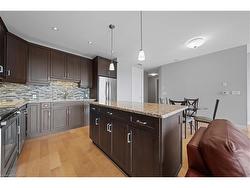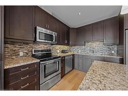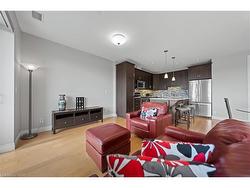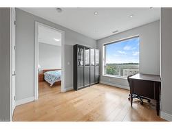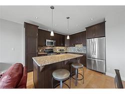 Experience upscale condo living at the Westmount Grand, one of Waterloo’s most prestigious addresses! This impressive west-facing 1-bedroom + den, 2-bathroom suite combines luxury, comfort, and convenience in the heart of Uptown Waterloo. Inside, you’ll find 9’ ceilings, a spacious open-concept kitchen with island, granite counters, stainless steel appliances, under-cabinet lighting, and a stylish backsplash. The expansive living and dining areas are framed by large windows, filling the space with natural light and showcasing panoramic city views. A bonus flex space offers the perfect spot for a home office. Hardwood flooring flows seamlessly throughout the main living area, adding warmth and elegance. The oversized primary bedroom is a true retreat, featuring a large window, dual closets, and a 5-piece spa-inspired ensuite. Additional highlights include a second full bathroom, in-suite laundry, and a storage room. Step out to the spacious covered balcony to take in spectacular sunsets! This unit also includes one underground parking space and one locker. Residents of Westmount Grand enjoy an array of first-class amenities: a rooftop terrace, library, fitness centre, sauna, entertainment room, and secure underground parking. Perfectly located, you’ll be steps from Uptown Waterloo’s restaurants, shops, and parks, and just minutes from the University of Waterloo and Wilfrid Laurier University. Luxury, lifestyle, and location—this condo has it all!