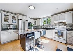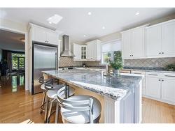 Nestled within the prestigious and HIGHLY SOUGHT-AFTER LAURELWOOD NEIGHBOURHOOD of Waterloo, this extraordinary custom-built residence by “Grau” Homes presents a rare opportunity for luxurious living that includes a completely separate in-law suite. Set upon a MAGNIFICENT, PRIVATE PREMIUM LOT, the home is a masterpiece of superior engineering and design, featuring robust 2' x 6' construction and soaring 9-foot ceilings. Step through the covered porch into a BREATHTAKING TWO-STORY FOYER, where a stately SOLID WOOD staircase with elegant railings beckons you inside. Sunlight pours through expansive windows, illuminating the formal living and dining rooms with delightful views. The heart of the home is a chef’s DREAM KITCHEN, SHOWCASING CUSTOM CABINETRY, a sleek stainless vent hood, GRANITE COUNTERTOPS, extended cabinetry with desk nook, standup freezer, and tumbled marble backsplash. A sprawling center island overlooks the sun-drenched dinette and family room, where a COZY GAS FIREPLACE and walls of windows frame the backyard oasis. Sliders open to an impressive two-tier composite deck with lighting and a serene stone patio. Upstairs, RICH HARDWOOD FLOORING leads to the private quarters. The generous primary suite features FLEXIBLE SPACE for an office or nursery, a walk-in closet, and a lavish five-piece ensuite with jetted tub and shower. Three additional bedrooms and second-floor laundry complete this level. The PROFESSIONALLY FINISHED LOWER LEVEL unveils a self-contained in-law suite with full kitchen, spacious living room with gas fireplace, dining area, bedroom, and four-piece bathroom with separate laundry. A walkout leads to a NEW STONE PATIO and private BBQ area with retaining walls and ambient lighting. Beyond the home, enjoy a DOUBLE CAR GARAGE, CONCRETE DRIVEWAY, landscaped grounds, and paver walkway. Embrace the LAURELWOOD LIFESTYLE WITH TOP-RATED SCHOOLS, serene trails, parks, and upscale shopping just moments away.