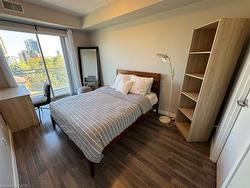 Turnkey Investment or Move-in Ready Gem Like a 2-Bedroom Unit in Prime Waterloo Location! Welcome to this immaculate, owner-used unit in the highly desirable Sage 2 building, offering premium off-campus living just steps from Wilfrid Laurier University and minutes to the University of Waterloo. Maintained in excellent condition, the layout functions like a 2-bedroom unit, featuring a spacious primary bedroom and a separate den with a door and direct access to the balcony, which is perfect as a second bedroom or private office. With two full bathrooms, in-suite laundry, and a private balcony, this bright and modern unit is fully furnished and truly move-in ready. Included is one rare parking spot, adding both convenience and value. Located directly across from WLUs Business School, this unit is situated in one of Waterloo's most vibrant student and professional communities. Residents enjoy high-speed internet, secure building access, a social lounge, and dedicated study spaces. Whether you're an investor or seeking a personal residence, this is a turnkey opportunity in the heart of Waterloo's district. FURNITURE IS AVAILABLE FOR PURCHASE.