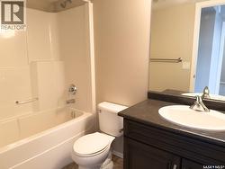 Welcome to the Chaparral Ridge in south Martensville! This upper level townhouse offers over 1,000 sqft of living space, vaulted ceilings and a bright and open layout! The kitchen is well-equipped with dark cabinets, corner pantry, peninsula seating and all appliances included! The dining and living room are spacious with room for entertaining, with a covered deck for your BBQ. Both bedrooms are a good size, the primary with a walk-in closet. A 4 pc bath and a laundry room complete the space. Additional storage in a storage space on the main level, 2 parking spaces and tons of visitor parking across from the unit, make this place extra convenient. Enjoy low condo fees in this family friendly complex, with pets permitted with restrictions. Steps from shops and restaurants and quick access to Costco and Saskatoon! Don't miss out on this home! (id:27)