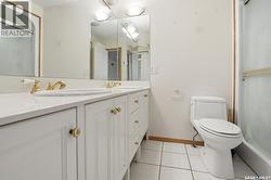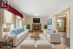 Welcome to 330 Fehr Crescent. This home is located on large pie shaped lot on a quiet crescent in Martensville. Enjoy your large back yard that is fully fenced, lots of mature trees and a large shed. The lot does have a back lane that gives you the option of rv parking and or a detached future garage. Out front you have a double interlocking block driveway that leads to the double attached garage that is heated! Once inside you will find a very spacious home that has 1820 square feet spread over two levels. The main floor has a large foyer, formal dining room, large kitchen, den, 2 piece bath and a large living room that features a gas fire place. Upstairs featureds a huge master bedroom with a walk in closet, gas fireplace, ensuite bathroom with a separate jetted tub! Also on the upper level is another 4 pc bathroom and two more bedrooms. The basement has a storage room, utility room and a bedroom with a walk through closet to the 4 pc ensuite. The basement could also be used as a small family room. Call today to view!! (id:27)