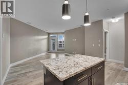 Welcome to The Brixton, where style and comfort come together in this beautifully finished one-bedroom, one-bathroom unit. The kitchen offers Superior cabinetry with soft-close doors and drawers, a glass tile backsplash, stainless steel appliances, granite countertops, under-mount dual sinks, and a convenient island. A dedicated dining area sits between the kitchen and the spacious living room, which opens to a generously sized balcony featuring aluminum railing and glass inserts. The in-suite laundry room includes a stackable washer and dryer and storage for added convenience. Throughout the home, you’ll find upgraded interior doors, baseboards, and casings, along impressive 9-foot ceilings. Additional highlights include a gas line for your BBQ, central air conditioning, and privacy glass between balconies. The building offers two amenity rooms—one fully furnished with a bathroom on the main floor, plus a meeting room on the third floor—and a guest suite for visiting friends or family. This unit also includes underground heated parking stall number 139 and storage locker number 41. It’s also ideally located within walking distance to shopping, restaurants, numerous amenities, beautiful parks, and scenic walking paths, making daily conveniences and outdoor enjoyment easily accessible. (id:27)