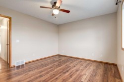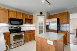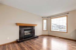 This beautifully maintained home, nestled in the serene canals of Airdrie, offers a perfect blend of comfort and convenience, backing onto green space and a school! The spacious backyard is an absolute highlight, featuring a greenhouse, raised garden beds, a well-maintained lawn, and a large privacy screen along the back fence, ensuring seclusion while you enjoy the outdoors. The expansive back deck, accessible from the eating nook, provides a perfect space for outdoor entertaining, with stairs leading down to a charming patio area. Inside, the open-concept kitchen boasts stainless steel appliances, a corner pantry, and a central island, seamlessly connecting to the eating nook with views of the backyard. The living room is bright and inviting, with a large front-facing window and a cozy fireplace with tile surround and mantle, creating a perfect spot for family gatherings. This level also features three bedrooms, including the spacious primary suite with a walk-in closet and a large window overlooking the backyard and green space. A shared 4-piece bathroom serves these main level bedrooms, offering ample space for family members or guests. The lower level is equally impressive, this fully finished space offers a great sized laundry area, three additional bedrooms, a 4-piece bathroom, and a large rec room with great with natural light. There is endless versatility for this lower level - perfect for a home office, entertainment area, or playroom. With its well-designed layout, plentiful natural light, and thoughtful design, this home offers a charming abode in a highly sought-after neighborhood, combining the best of indoor and outdoor living!
