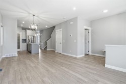 Main Floor Office • Oversized Double Garage (Bring Your Trucks! 8 Feet Tall Door) • Upper Loft • Side Entrance Basement • Triple-Pane Windows! Welcome to your brand new 2025 home in the award-winning community of Coopers Crossing Airdrie. Sitting proudly on a conventional lot (a.k.a. more yard to actually use), this home is thoughtfully crafted for real life—working, relaxing, entertaining. Step inside to an open-concept main floor boasting 9’ ceilings, sunshine for days, and ultra-efficient triple-pane windows to keep you cozy in winter and cool during "why is it so hot?" season. Need a home office or private guest hideaway? The main-level flex room has you covered—conveniently located next to a sleek bathroom with a floating vanity that practically winks at you.Head upstairs to discover the bonus loft—perfect for movie nights, homework zones, or staging epic pillow forts. Three generously sized bedrooms await, including a primary suite designed for maximum relaxation with a walk-in closet and a spa-inspired ensuite where you can pretend you’re at a resort. Laundry is right down the hall, so no carrying baskets up and down stairs! The unfinished basement (with 9’ ceilings, painted concrete floors, and a separate side entrance) is a blank canvas. Gym? Secret lair? You decide.Outside, the star of the show: an oversized double detached garage—big enough for trucks, tools, toys, and possibly your ambitions. The conventional lot also gives you plenty of backyard space for BBQs, gardening, or letting the dog live its best life.All of this is just a short stroll from St. Veronica and Northcott Prairie schools, scenic parks, walking paths, and the Coopers Town Promenade—home to Sobeys, cafés, restaurants, and everything you forgot you needed until five minutes ago.Turn the key, settle in, and start your next chapter in Coopers Crossing—your future self will thank you.