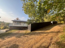Welcome to this beautifully updated 4-bedroom, 3-bathroom home with a walkout basement, ideally located in town yet offering exceptional privacy. Step inside to find stunning updated flooring throughout and a gorgeous modern kitchen featuring a large island—perfect for family gatherings and entertaining. The upper level offers a spacious primary bedroom with a 3-piece ensuite, plus two additional bedrooms and a 4-piece bathroom complete with a luxurious jetted tub. Downstairs, the walkout basement expands your living space with a bright rec room, cozy family room, a 3-piece bathroom, a fourth bedroom, and a versatile flex room ideal for an office, toy room, or home gym. A large utility/laundry room provides extra storage space for convenience. Enjoy your own private outdoor retreat with a fenced yard, deck for entertaining, and space for kids and pets to play safely. Recent upgrades include brand new carpet flooring downstairs, a new furnace, and a durable metal roof and gutters installed approximately 4-5 years ago. Additionally, a tarp shed and a garden shed are also included.