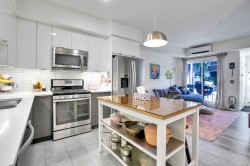 Discover Wonderful Living in this well managed complex in Duke apartments with a townhome vibe, you have your own private entrance, no steep ladder to climb, and no busy elevators, just for you to enjoy. You will be in the center of it all, but nestled on a quiet street and only a few steps away from the excitements. Welcome to this stunning 1-bedroom, 1-full bathroom home, perfectly situated on the ground level overlooking the serene south blue sky. This unit is designed for both comfort and style. Inside, you'll find an open-concept layout that seamlessly blends elegance with functionality, it features a spacious kitchen with modern cabinetry, a kitchen island that serves as a breakfast bar, a free-flowing living area and a dining space with a private front porch and your own exclusive entrance. You might be buying an apartment but has a feel of a townhome living. Every detail has been thoughtfully considered to create a warm and inviting atmosphere. No car, no problem, the building is tactically built within a short distance walk to downtown core, around the corner is a bus stop and a hop, skip and a jump to the stampede c-train station. It is now vacant and interior pictures published does not now reflect the inside of the unit. Don't miss the chance to own this exquisite property. Schedule your private tour today and experience this exceptional home firsthand!