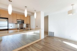 This stunning condo combines modern luxury with exceptional design, featuring brand-new flooring and fresh paint throughout. The open-concept floor plan showcases trendy wide plank flooring and a gorgeous kitchen equipped with quartz countertops, stainless steel appliances and a large breakfast bar perfect for entertaining. Floor-to-ceiling windows flood the space with natural light and offer unobstructed views. Step onto one of the largest and sunniest private balconies in the building to enjoy Calgary's vibrant skyline.The spa-like master retreat comfortably accommodates a king-sized bed, two nightstands, and a large TV. It features custom California closets and a lavish 5-piece ensuite with dual sinks, a fully tiled shower, a soaker tub, and convenient front-loading washer and dryer. The condo also includes a guest bathroom for added convenience.An additional highlight includes a titled underground parking stall. The upscale Castello building provides exceptional amenities, including a concierge, a fully equipped gym, a social room, a guest suite, a car wash bay, and more.Perfectly located steps away from downtown, shopping, and Calgary's vibrant nightlife, this property offers the ultimate urban lifestyle. Don’t miss this opportunity to own a luxury condo in one of Calgary’s hottest locations!