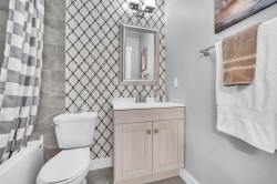 Stunning fully updated 3 bed / 1.5 bath end unit townhome. Perfectly located to the NW community of 'Thorncliffe' - featuring easy access to Deerfoot City, highways, downtown, nose hill park, walk to amenities and so much more. Step inside to your new home, with luxury upgrades and 1,129 sq ft of space to enjoy on the upper 2 levels. The main floor features: Living space, half bath, eating nook, and kitchen. Large windows leave the space feeling bright/inviting, along with new updates like freshly painted, wainscotting on wall, luxury vinyl plank flooring throughout, and best of all a new kitchen! The kitchen features: bright white cabinetry, quartz counters, two tone tile work, chic wallpaper, SS appliances with warranty, pantry, lots of cabinet space, crown moulding, & more. Head upstairs to find an updated cable railing, giving the home a high end feel. The upper level is complete with: 3 bedrooms, and fully updated full bathroom. The full bathroom has beautiful tile work, shower/tub combo, vanity, toilet. Primary room is a great size with ample room for additional furniture and large closet space for storage. Although the upper two levels offer a great amount of space, you also have an unfinished basement that is awaiting your creativity. The following are upgrades that have been done for your enjoyment: solid wood baseboards, solid wood casings, wainscotting, wallpaper, freshly painted, LVP floor, quartz counters, new kitchen, SS appliances w/ warranty, new toilets, new vanities, new doors, new hardware, new boutique light fixtures, and more. There is an included outdoor parking stall, along with street parking, & easy access to transit. With so much to offer in such a great location, this makes for a great place to call home this Christmas. Book your viewing today, before it's gone!