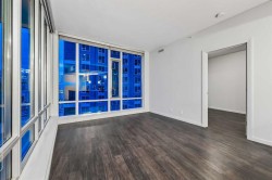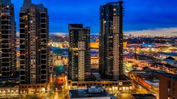 Exceptional 16th-Floor Unit with Breathtaking Panoramic Views! This beautifully appointed unit on the 16th floor offers stunning, uninterrupted views of both the mountains and downtown skyline. Ideally situated within close proximity to the LRT and the MNP Community & Sport Centre, this residence combines convenience with luxury. The upgraded interior features high-quality finishes, including maple cabinetry, granite countertops, stainless steel appliances, luxury vinyl flooring, tile, and floor-to-ceiling windows that maximize natural light and panoramic vistas. The entryway includes a walk-in coat closet with custom built-in storage for added organization. A dedicated home office area is integrated into the layout, complete with a granite work surface. The in-suite laundry room offers additional storage space for everyday practicality. The generously sized second bedroom enjoys remarkable views and includes a walk-in closet with a convenient cheater door leading to a well-appointed bathroom featuring a large walk-in shower. The kitchen, with its modern design, opens seamlessly to the dining and living areas, creating an ideal space for entertaining. The private balcony extends the living space outdoors, offering an excellent setting for barbecuing or simply taking in the spectacular scenery. The comfortable living room provides an inviting atmosphere for relaxation and social gatherings. The primary bedroom is a peaceful retreat, showcasing expansive views and a walk-through closet that leads to a luxurious four-piece ensuite bathroom. Residents also enjoy access to a well-equipped amenity center, which includes an exercise room, hot tub, sauna-equipped dressing rooms, a gathering space with pool table, theater room and patio access, one being the rooftop! Additional features include assigned storage and one titled parking stall. Located just a couple of blocks from the Stampede Grounds and the C-train station, this prime location offers easy access to downtown amenities, dining, entertainment, and much more. This building is 18+ and no dogs are allowed. Book your showing and come on Buy!