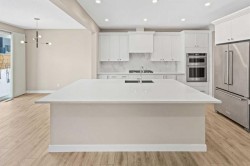 ** OPEN HOUSE ALERT SATURDAY at 12:00 noon to 3:00 PM ** 164 Wolf River Drive SE will be sure to impress! **JAYMAN CERTIFIED KARMA 24 FLOOR PLAN** Boasting 2279+ square feet of gorgeous upgraded Fit and Finish design and décor that will appeal to the most discerning buyer. Immediately upon entering, you are invited into an open floor plan that exudes beauty. Seamlessly transitioning to the 4TH BEDROOM and FULL BATH, could easily be your Den/Home Office. The main floor plan opens up to showcase a stunning, oversized, Elegant White Quartz island framed by the same stunning quartz countertops around the perimeter. Boasting stunning Glacier White cabinets, stylish chrome hardware, soft-close drawers, and a beautiful full tile backsplash, the kitchen will check off all your boxes. Sleek stainless steel KitchenAid appliance package includes a 36" gas cooktop, built-in wall oven with convection microwave, French door refrigerator with water dispenser and ice maker, dishwasher with stainless steel interior and Broan power pack built-in hood fan with designer shroud. Complimenting the main floor, you will discover Divine Maestro Forte laminate flooring throughout, with 12x24 Divine Luxury Vinyl tile in the Main Bath, en suite, and laundry. To complete this outstanding main-floor area design, you will also find a cozy electric fireplace and a sliding glass patio door that will lead you out to your future backyard. The upper level features a centralized Bonus Room with a tray ceiling, along with three more sizeable bedrooms, with the primary suite offering a 5-piece 'spa-like' en suite. Dual vanities, oversized soaker tub, stand-alone shower, and a spacious walk-through closet to the 2nd-floor laundry for ease of access. Excellent design for the busy family. James Hardie board on the front exterior, along with the elevated contemporary prairie elevation and EXTRA Fit & FINISH. Enjoy the DOUBLE FRONT ATTACHED GARAGE and CONVENIENT SIDE ENTRANCE. Wolf Willow is a highly sought-after community located in the Bow River Valley adjacent to the Blue Devil Golf Course. Breath-taking and inspiring with plans to include parks, schools and additional amenities, Wolf Willow offers 9km of pathways alone. Not to mention the abundance of trails surrounding the neighbourhood. A quiet retreat allowing you to enjoy nature's best while being close to the big city amenities and quick access to McLeod Trail and 22X. Welcome Home!