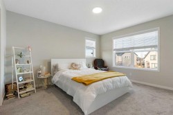"Open House - December 7th 300pm-430pm* Welcome to this beautifully finished 3-bedroom, 2.5-bath detached home in the vibrant, amenity-rich lake community of Mahogany. Offering 1,441 square feet above grade and upgraded to 9-foot basement clearance, this home blends stylish design with everyday functionality in one of Calgary’s most sought-after neighbourhoods.Step inside to discover high ceilings on the main and an open-concept floorplan featuring midnight blue kitchen cabinetry, sleek stone countertops throughout, and a premium Blanco Horizon undermount sink. The space is as practical as it is striking, with a front-load washer and dryer conveniently located in the upstairs laundry.The elegant primary suite includes a spacious walk-in closet and a private 3-piece ensuite, while two additional bedrooms provide space for family, guests, or a home office. From top to bottom, the home is thoughtfully finished with a refined, modern touch.The basement can be finished to give a spacious and airy feel with the high ceilings. There is ample room and an egress window for a generous sized bedroom and also the ability to utilitze the existing rough-in for a full bathroom development.Outside, enjoy a low-maintenance front yard, a fully fenced backyard for added privacy, and paved lane access to your oversized parking pad. You're just 1 km from the Mahogany Beach House—offering year-round recreation like swimming, fishing, tennis, paddleboarding, skating (including a 2.4 km skating path), hockey, volleyball, playgrounds, a gymnasium, splash park, basketball courts, and even firepits for cozy evenings.Whether you're an active family or looking for a peaceful retreat in a lake community, this home delivers on all fronts. Book your private tour today and experience the best of Mahogany living!