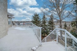This large upgraded bungalow features central air conditioning and a grade-level walkout, opening to a spacious yard on an expansive 12,270 sq ft lot. Vaulted ceilings and large windows over the entry flood the home with natural light, creating a bright and inviting atmosphere. Thoughtfully designed, the home blends openness with subtle partitioned areas, allowing the kitchen, living room, and formal dining room to flow seamlessly into the foyer. A central skylight further enhances the natural light from all directions. The layout also cleverly dampens acoustics, ensuring activities in one area don’t disturb those in another. The deck off the kitchen offers easy access to the yard and ideal for summer entertaining. The main floor features a spacious primary bedroom with a 5-piece en-suite, including a soaker tub, dual vanities, and a large walk-in closet. Two additional bedrooms, a 4-piece bathroom, and a convenient laundry/mudroom off the garage complete the main floor. The walk-out basement feels more like a bright living space than a basement, with in-floor heating, two additional bedrooms, a 4-piece bathroom, a large rec room, a studio, a sunroom, and a hot tub room (unfinished). Enjoy two expansive decks, ample under-deck storage, and a lush yard with mature trees and shrubs. The location also provides easy access to community amenities, including tennis and basketball courts, as well as several leisure centres and parks. This unique home has undergone numerous upgrades, including a remodelled kitchen, renovated bathroom, newer plumbing, a newer roof, and upgraded appliances. *Please note this home is a Judicial Listing, and the home will be sold "As is".*
