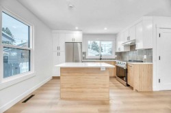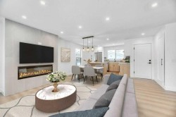 Every detail of this fully renovated home has been thoroughly designed. The property includes a brand-new FULLY LEGAL BASEMENT SUITE featuring its own independent furnace and private laundry, offering exceptional comfort and income potential. Comprehensive upgrades include a new 100A ELECTRICAL PANEL with UPDATED WIRING, all new VINYL WINDOWS and PROPER EGRESS WINDOWS on the lower level. The home showcases NEW CABINETRY throughout, LUXURIOUS QUARTZ COUNTERTOPS and a PREMIUM STAINLESS STEEL APPLIANCE PACKAGE. Wide-plank, water-resistant LAMINATE FLOORING flows seamlessly throughout the home. Beautiful tile front cozy FIREPLACE completes the living room. Both bathrooms have been completely REDESIGNED with MODERN finishes. Outdoors, enjoy the generous South facing backyard, with a large new Sun-Soaked deck with custom planter box and an OVERSIZED Single Garage, all set on a quiet street. Close to shopping, schools, public transportation and WALKING/BIKING paths connecting to Fish Creek Park. Easy access to Deerfoot & Blackfoot Trail. “All this and so much more - this home is TRULY A MUST SEE”!