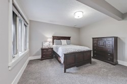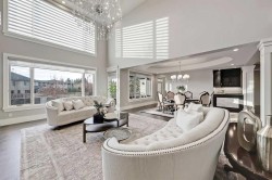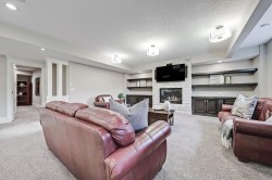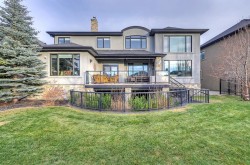 This exceptional Aspen Woods residence captures the best of west-side living—space, light, and quiet sophistication. Set on a 65’ x 136’ lot with a west-facing backyard and no rear neighbours, this well designed home offers over 6,200 sq.ft. of thoughtfully crafted living space. Soaring 19-ft ceilings, a chef-inspired kitchen, elegant living and dining areas, and a full lower-level entertainment zone define this remarkable home. A stone-and-stucco exterior, exposed aggregate drive, and heated 4-car garage set an impressive tone. Inside, a grand curved staircase and statement chandelier anchor the foyer. The living room features double-height ceilings and a full-height stone fireplace beside the formal dining area with bar and display cabinetry making this the perfect place to entertain friends and family. The kitchen connects effortlessly to the family room and breakfast nook, featuring JennAir appliances, granite counters, a prep island, bar seating, and walk-in pantry. A refined office with a built-in granite-topped desk and custom millwork creates a sophisticated and luxurious workspace for ultimate comfort and productivity. Nicely completing this floor is a large laundry with ample counters and storage, a stylish powder room featuring a stunning stone accent wall, and a well-appointed mudroom with custom built-ins. Upstairs, the primary suite is a true retreat with sitting area, walk-in closet, and spa-inspired 5-pc ensuite with two-way fireplace, freestanding tub, dual vanities, and tiled shower. An additional 3 bedrooms include one with ensuite and balcony, plus two sharing a 5-pc bath and loft nook. The walkout lower level impresses with a large rec area, wet bar, wine room, fourth gas fireplace, two bedrooms, and two full baths. Additional highlights include central A/C, in-floor heat rough-in, new high-efficiency hot water tank (2025), covered patio, upper deck, pro landscaping with irrigation, smart exterior lighting, and a six-camera security system. Quietly tucked on a cul-de-sac near top private schools (Rundle, Webber & Calgary Academy), Aspen Landing, Westside Rec, LRT, and pathways—this is elevated west-side living at its finest and the perfect place to call home.