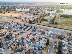 Location! Location! Location! This home is located in a quiet cul-de-sac within walking distance to LAKE SUNDANCE, a 33-acre man-made lake and a 22-acre park that offers year-round activities (like fishing, canoeing, kayaking, windsurfing, paddle boarding, pedal boats, rowboats, scuba diving, skating, tobogganing, pickleball, basketball, beach volleyball, soccer). This inviting 3-BED, 1.5-BATH home combines comfort and convenience, all on a generous PIE-SHAPED LOT with an OVERSIZED DOUBLE DETACHED GARAGE and a private FULL-WIDTH FRESHLY PAINTED DECK. The first thing you notice when you come home is the chandelier in the foyer and the open living room/dining room area, a fresh coat of paint refreshing the home interior. The kitchen features a BRAND NEW STAINLESS STEEL STOVE, DISHWASHER, and MICROWAVE HOOD FAN, BUILT-IN BENCH SEATING, and CUSTOM CABINETRY, achieving the best of function and aesthetic. The upper floor features BRAND-NEW CARPET and LIGHT FIXTURES, and good-sized bedrooms. A HIGH-EFFICIENCY FURNACE ensures cozy winters, and CENTRAL AIR CONDITIONING contributes to summer comfort. The UNFINISHED BASEMENT offers plenty of potential for a rec room or workshop. Outside, the FENCED yard provides privacy and security, and a STORAGE SHED adds extra convenience.This home is perfectly positioned for lifestyle and recreation. Enjoy lakeside strolls just steps away at LAKE SUNDANCE or take a short five-minute drive to SICOME LAKE and FISH CREEK PROVINCIAL PARK. The property is within walking distance to MULTIPLE SCHOOLS, CHURCHES, TRANSIT OPTIONS, and other local amenities, making everyday life simple and convenient.Competitively priced in the single-detached home market, this home offers excellent value and a strong opportunity to add personal touches, especially with the unfinished basement. Don’t miss the chance to make this charming Sundance home your own and enjoy all the benefits of COMMUNITY, NATURE, and easy access to city conveniences. Call your favourite Realtor® and book your showing today!”