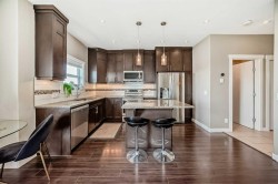 Huge price reduction for quick sale! Welcome to this three-bedroom fully walkout townhouse in Redstone NE, perfectly situated backing onto a serene walking trail and a pond. With a total living area of 1,721.3 square feet, this stunning property boasts 3 spacious bedrooms, 2.5 bathrooms, a single attached garage and a beautifully finished walk out basement.The main floor has a bright and airy living area that seamlessly flows into a kitchen. The kitchen is equipped with quartz countertops, ample storage space, a convenient kitchen island and sleek stainless steel appliances. A half washroom is thoughtfully located on this level. The living area expands onto a spacious balcony, where you can soak in the views of the pond and walking trail.The upper floor is hosting all three bedrooms. The primary bedroom is complete with a large window, patio door and a 4-piece ensuite bathroom. A spacious walk-in closet provides ample storage space. The two additional bedrooms are equally impressive, filled with natural light and boasting spacious closets. A full bathroom on this level serves both rooms. A convenient laundry area is located on this level. The walkout basement is perfect for relaxation and entertainment, featuring an expansive flex room with massive patio doors that lead to a concrete patio overlooking the pond. A bar area is complete with plenty of storage space and a convenient bar fridge. A storage closet is located in the basement. The backyard offers pond view and direct access to the walking trail. A spacious single attached garage at the front of the property provides additional storage space.Located in the desirable Redstone community, you'll enjoy being just a few minutes' drive from CrossIron Mills, with its vast array of shopping, dining and entertainment options. It is located close to Redstone and Skyview's plazas. You have easy access to Stoney trail and Deerfoot trail. Don't miss out on this incredible opportunity! Book a showing today to make this house your dream home. Contact us to schedule a viewing and take the first step towards making this property yours!