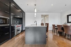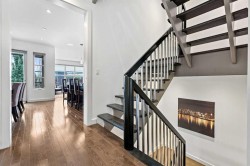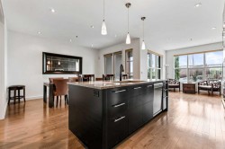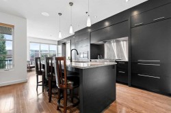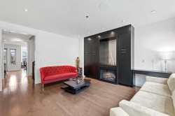 Experience elevated townhome living at 606 Aspen Meadows Hill SW – a luxurious 3-bedroom, 4-bathroom residence in the prestigious community of Aspen Woods. Built in 2020, this executive home is thoughtfully designed with a private in-suite elevator, upscale finishes, and a highly functional layout that suits both relaxed living and stylish entertaining. The main floor is bright and airy, featuring 9’ ceilings, engineered hardwood flooring, and elegant built-ins. The kitchen is a chef’s dream with granite countertops, a center island, gas cooktop, wall oven, and a stainless steel French-door refrigerator. A bright dining area opens through French doors to a sun-drenched west-facing patio, ideal for relaxing or hosting.The living room offers a cozy yet refined feel with its fireplace and custom built-ins overlooking the fenced backyard. Also on the main floor is a powder room and a spacious third bedroom with a walk-in closet and private 3-piece ensuite — perfect for guests, aging parents, or a home office. Upstairs, a generous loft space includes a wet bar, bar fridge, and custom cabinetry. The primary suite provides a peaceful retreat with a private balcony, walk-in closet, and a luxurious 4-piece ensuite with double vanity and oversized shower. The second upper bedroom also includes a walk-in closet and its own full ensuite bath. A convenient upper-floor laundry room makes everyday living easy.Additional features include central A/C, a double tandem attached garage, and a huge private storage room. Located close to Aspen Landing, LRT, top schools, and parks, this home offers upscale, maintenance-free living in one of Calgary’s most desirable west-end communities.