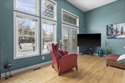 Cherished by its original owners since 2007, this lovely townhome is being offered to the market for the very first time. Set back from Royal Oak Way on an internal lane, this bright and welcoming residence reveals its character the moment you step inside. Heated tile flooring greets you in the foyer before you head up to the main level family room, where soaring vaulted ceilings and a dramatic wall of windows create an atmosphere of openness and light. Gleaming maple hardwood floors flow throughout the main living spaces, while garden doors open to your own fenced yard - a rarity in townhome living - complete with a pergola-covered patio for summer gatherings. Beyond your fence, a landscaped central courtyard unfolds with winding pathways, mature trees, and a charming gazebo shared by the community. Climb another half-flight to discover the kitchen and dining area, where warm maple cabinetry, and under cabinet lighting features, speak to the quality built into this home. A half-wall allows you to look down into the family room and out to the green-space beyond - maintaining connection across the levels. A second garden door leads to an upper balcony, while a convenient powder room on this level accommodates the stacking washer and dryer. The top floor presents dual primary bedrooms, each generously sized with its own walk-in closet and ensuite bathroom - ideal for a variety of living arrangements. Back at entry level, a door leads to the partial basement - currently unfinished but ideal for a home gym, hobby space, or additional storage. The attached single garage completes the practical amenities. Location amplifies the appeal: the community park with its recreation options sits immediately next door, two schools are within walking distance, and shopping and dining are a two-minute drive away. It's little wonder the original owners stayed so long!
